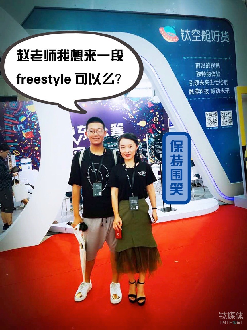 有幸成为“钛空舱体验大使”之一的我,看到如此多未来感十足的会场,N多新奇好玩的科技潮品立马让我觉得心里美滋滋。尤其是当我穿越传送门登陆钛空后活捉了偶像赵何娟老师,更是激动到想要现场表演一段freestyle……