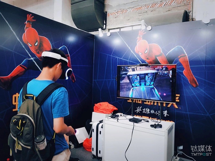 既然是科技娱乐馆,怎能少了近年来一直人气高涨的VR技术?钛星人们是否觉得平时骑动感单车甚是乏味?不妨戴上VR头显穿越到其他时空来一场惊险刺激的骑行,说走咱就走。当然,我也在VR技术的帮助下体验了一回做蜘蛛侠的快感,趣味无穷。
