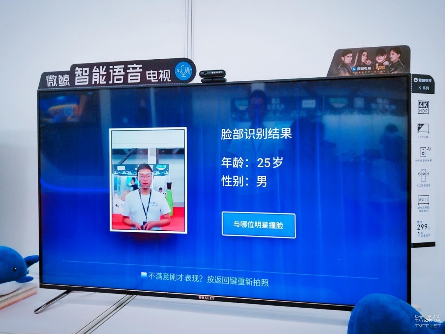 不仅冰箱焕发新功能,智能家庭馆内不少展出品都在常规产品的基础上解锁了很多新的玩法。比如微鲸电视自带的人脸识别技术就检测出我特别像吴彦祖(长得帅怪我喽)。