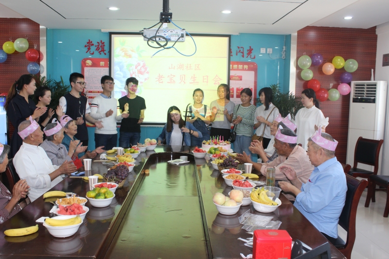 9月20日上午,山湖社区党总支将九月份过生日的老人集中在一起,为他们集体举办了一场温馨而又充满欢乐的生日宴。社区党员志愿者不仅为寿星们准备了水果、饼干、生日蛋糕还带来了魔术、二胡等才艺表演。八十八岁高龄的李爷爷说:“谢谢党和政府啊!这么多年都没过什么生日,这样的集体生日会更是头一回,真是热闹啊!”老人们一起做游戏、看表演、吃生日蛋糕、互相留影纪念,志愿者为老人们送去了暖暖的祝福,给他们留下了难以忘记的回忆。