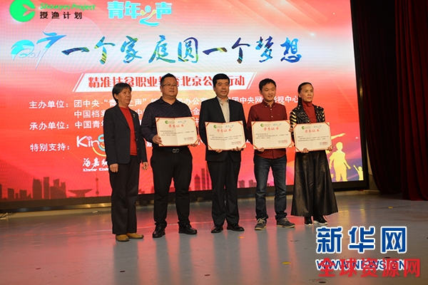 3月19日,授渔计划联合团中央“青年之声”互动社交平台开展的“一个家庭圆一个梦想”公益系列行动在京举行。“一个家庭圆一个梦想”公益系列行动2017年正式启动,该行动计划在全国感召2000个家庭帮助2000名贫困学生完成职业教育,此次活动北京站为首站。