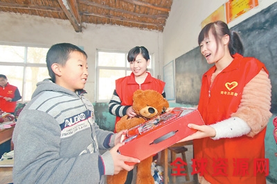 日前,山东莒南县组织青年志愿者开展“暖春帮扶行动”,志愿者们走进莒南县涝坡镇沃土小学,把书包、玩具等慰问品送给该校留守儿童,为推进精准扶贫献上一份力量。