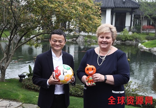 4月9日,马云在阿里巴巴西溪园区接待了一位特殊的“同事”,联合国可持续发展目标倡导者、挪威女首相埃尔娜·索尔贝格。