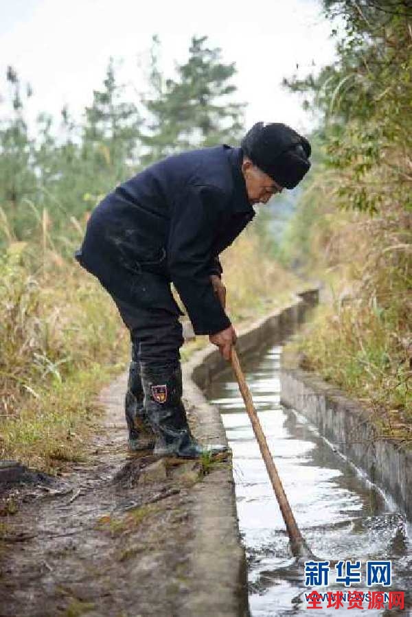 黄大发在清理水渠(3月24日摄)。新华社记者 刘续 摄