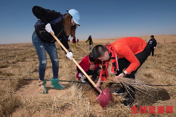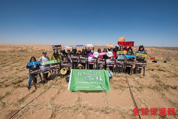 他们来自13个不同的明星粉丝团,同时也都是百万森林计划的捐赠人。在此次公益探访中,明星粉丝志愿者们在沙漠中亲手种下花棒苗木、扎草方格以固沙,为防治荒漠化,改善地球生态环境贡献自己的力量。