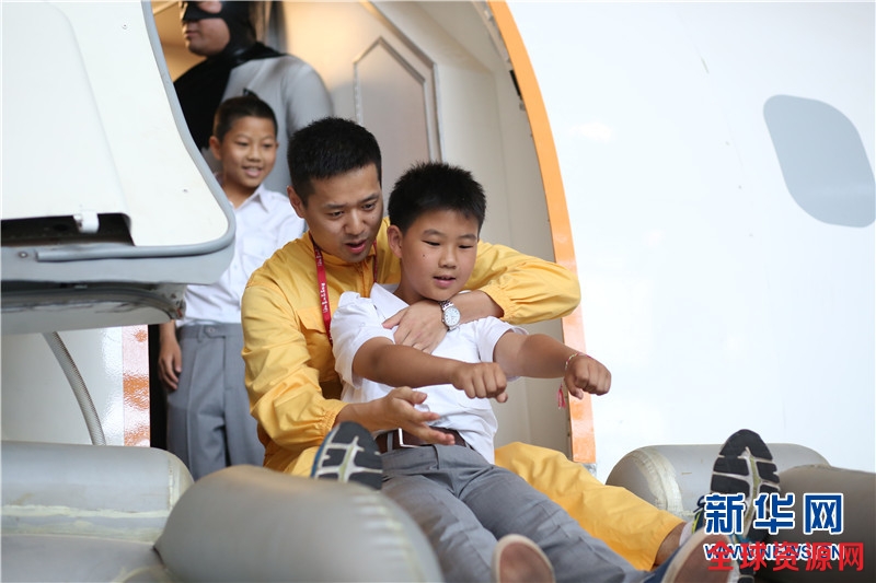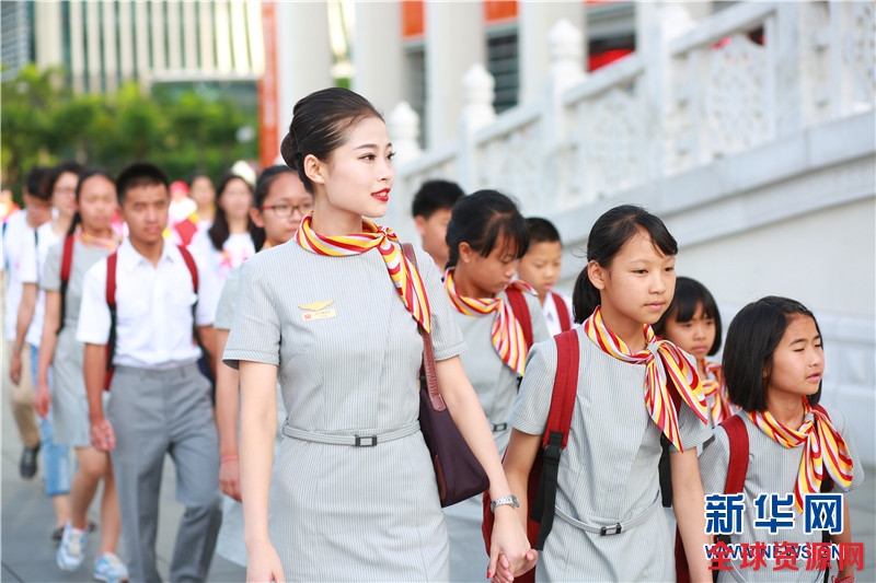 海南航空和首都航空的乘务员全程陪伴孩子们完成教学体验。新华网发