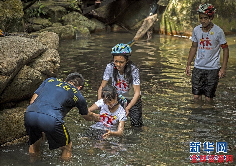 孩子们在游览海南景区的过程中学习团队协作。新华网发