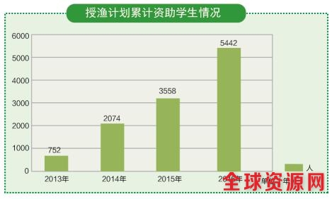 2013年我们资助了 752名学生,2014年我们资助了1322名学生,2015年我们资助了1484名学生,2016年我们资助了1842名学生,四年来我们资助了5400余名学生。