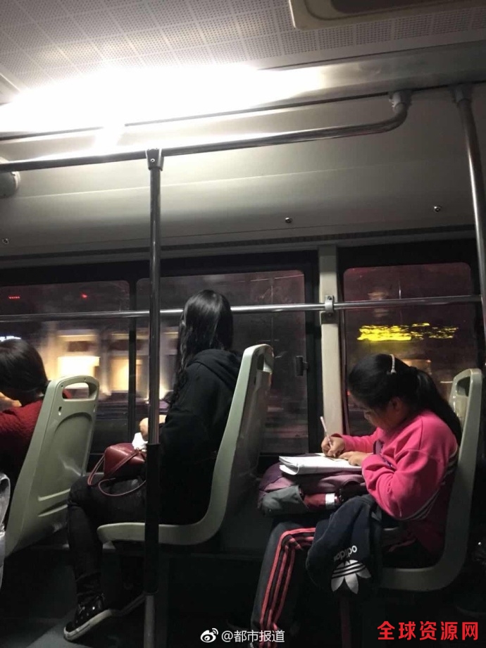 原标题:公交车上司机特意为写作业的小姑娘开了一盏灯 暖极了!
