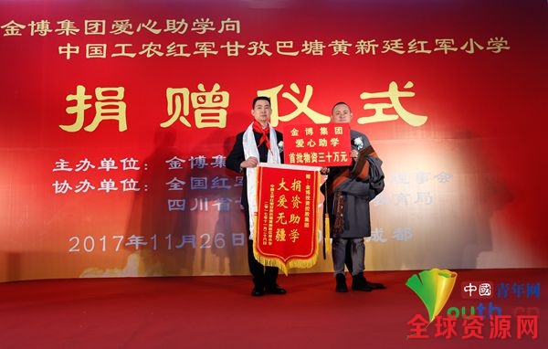 中国青年网北京11月28日电 (记者 李川) 11月26日,金博投资控股集团在四川成都向中国工农红军甘孜巴塘黄新廷红军小学捐赠价值30万元的爱心物资。