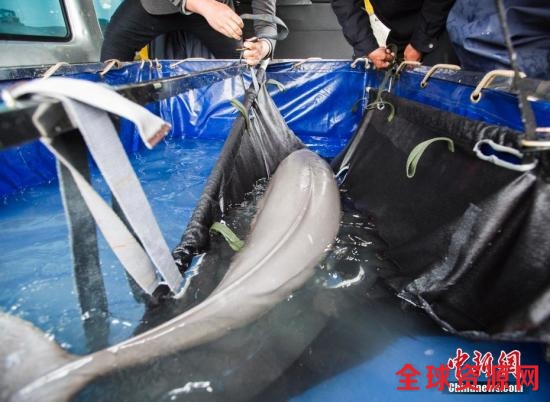 资料图:江西鄱阳湖四头江豚跨省外迁 。傅建斌 摄