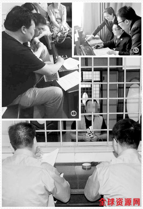 ①老会员(左一)指导“新人”填写资料;②侦查技术人员上网收集电子证据;③李金泽接受检察官讯问