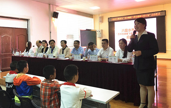 5月24日,“贵州蝴蝶飞脊柱健康关爱计划”启动仪式在钟山区第十一小学举行。贵州省励志助学中心秘书长周巧明、六盘水市人民政府副县级督学王战、六盘水市教育局副局长陈涛、六盘水市卫计委主任郑国伦、北京球爱的天空慈善基金会秘书长蒋若冰、深圳市慈缘慈善基金会秘书长李哲,以及“蝴蝶飞”脊柱健康关爱计划项目负责人、“玥乔爱馨基金”发起人马玥乔,首都医科大学附属北京朝阳医院骨科主任海涌、首都医科大学附属北京朝阳医院骨科主任医师康南,和钟山区第十一小学德育校长袁春秀出席了此次启动仪式。