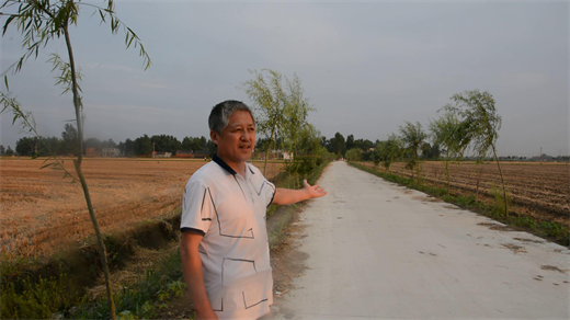 邓州市军杨村党支部书记丁心团介绍道路建设情况