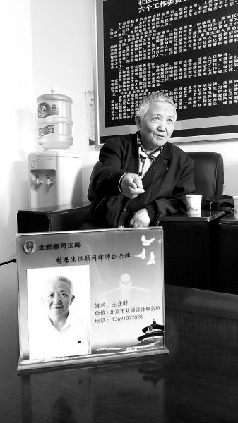 王永旺,1945年生人,北京双强律师事务所执业律师。如今活跃在“法律服务村居行”第一线的律师中,他是年纪最大的一位。
