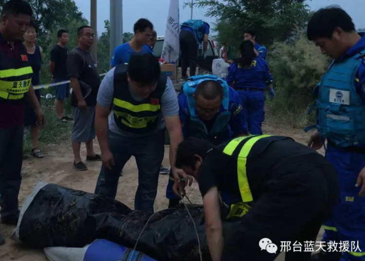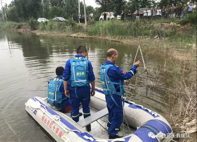 2018年6月11日 16:30左右邢台红十字蓝天救援队接到巨鹿消防队转来的求助信息,两名男青年去水坑游泳,一人下水后不幸溺亡,消防队员正在搜救排查。现场水域情况:静态水域,水深4米左右,水面宽度50-60米左右,水面长度100米左右,水深1-4米,水底坑洼不平。邢台队沙河溺水救援刚刚结束,队员正在清理装备,接到求助信息,邢台8车17人携带冲锋舟和水域救援装备立即由沙河出发赶往巨鹿,参与救援行动。