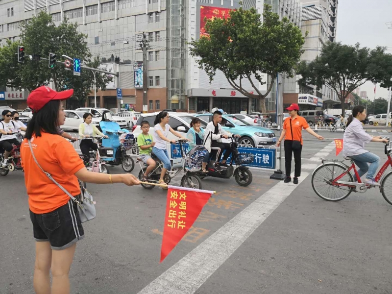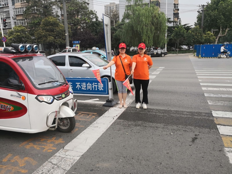 今天志愿者的任务是在中华岗交叉路口值勤,维持交通秩序,劝导不文明的交通行为。他们以自身的行为告诉行人要具有主人翁意识和社会责任感,大家都要养成良好的交通意识和文明出行习惯,提升文明素养,助力邢台“双创”工作。