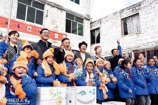 2017年11月,马蔚华在贵州参加万有暖力·人人公益壹基金温暖包全国启动仪式。