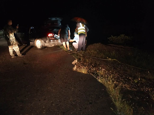 由于夜间救援视野受限,加上该路段正在施工,几个路口非常崎岖难行,走到野生原度假村路段,队员们差点儿走错了路,多次与车主和前期到达的队员秘春雷联系,确定位置,到达现场后看到焦急万分的车主和雨中先期到达淋着雨的队员,大家迅速展开施救。