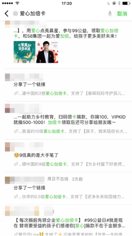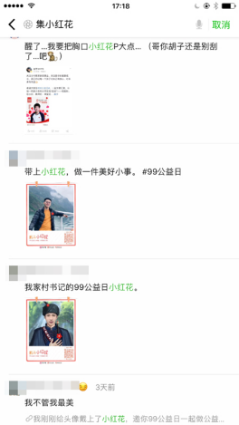 在掀起一阵热潮的“集小红花”活动,超1800万人次参与,另有不少用户通过天天P图的新功能,纷纷将小红花“戴”到了自己的微信头像上,以表示对99公益日的支持;而“爱心加倍卡”能够让善款最高放大到10倍,成了企业参与互联网公益的全新渠道,引发了大量用户参与并转发的热情。一时间,在社交平台呼朋唤友参与公益、利用社交关系链让爱心成倍放大,已成为海量用户在99公益日期间的一种“公益时尚”。