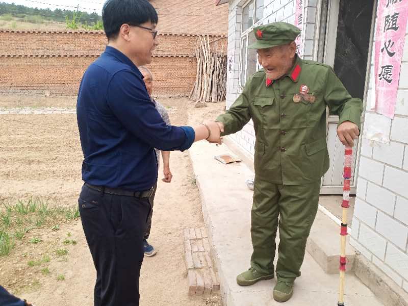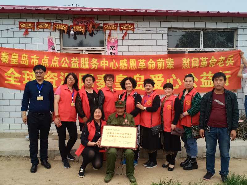 全球资源网秦皇岛(张士财 余丽芳讯)2019年5月17日,秦皇岛市点点公益服务中心的志愿者代表:张士财、余丽芳、魏月君、石敏茹、路英霞、马会玲、王海英、王丽新、李晓青一行9人,迎着冉冉升起的朝阳,怀着无比激动的心情。驱车近400公里,到赤峰市喀喇沁旗慰问我们仰慕已久的老兵董存瑞的战友现已90岁高龄的姜万川老人,他曾经立下赫赫战功,在解放隆化战役中亲眼目睹了英雄董存瑞舍身炸碉堡。我从小就是听着英雄的故事学着英雄的课文长大的,那些在国家危难之时而不畏生死、气吞山河的英雄情节在我心中已根深蒂固。