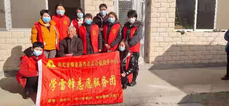 秦皇岛市点点公益学雷锋志愿服务团给他们带去了大米、面粉、挂面、食用油等基本生活用品和慰问金1500元。志愿者金红现场捐赠人民100元、志愿者王玉芝现场捐赠100元、志愿者马向华现场捐赠100元、志愿者于虹现场捐赠100元。