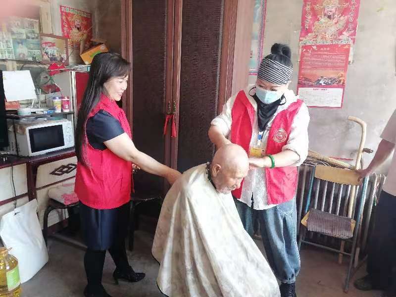家住秦皇岛市抚宁区大新寨镇峪门口村95岁高龄的抗战老兵张桂柱老人家,1947年参加中国人民解放军,在高炮529团任副班长,参加过解放战争和抗美援朝战争的多次战役,荣立大功一次,因战场猛烈的炮声造成两耳失聪,现已风烛残年的老人家依然精神矍铄,骨子里那股军人的刚毅犹存而不失当年风采。当看到志愿者来看望他老人的时候,一种无以言表的幸福感油然而生。我们团队给老人家带去了大米、面粉、挂面、食用油、中秋月饼和慰问金500元。志愿者金红也给老人家带去了营养品。志愿者邵玉友给老人家带去外用止痛喷剂两盒。志愿者王丽新给老人家刮胡子理发,让老人家精神面貌焕然一新。