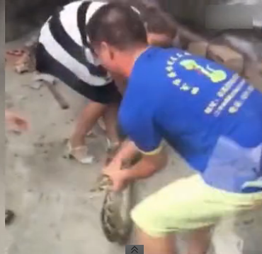全球TV:惊现巨大蟒蛇 女汉子徒手上阵捕蛇